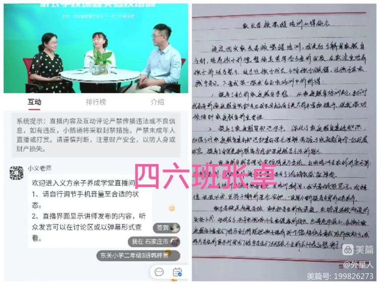 家庭教育的目标是培养习惯,家庭教育的行动是有效陪伴,这是一场深入的学习,更是一场思想的盛宴。各中小学、幼儿园积极行动,利用校讯通、微信群、QQ等多种形式,广泛宣传,分享转发,校长、教师、学生家长们认真学习,并将所做笔记、心得体会、收看照片等文字、影像,上传到所在班级,相互学习,共同提高;评论区打卡、留言、点赞,收看人数超过18万。