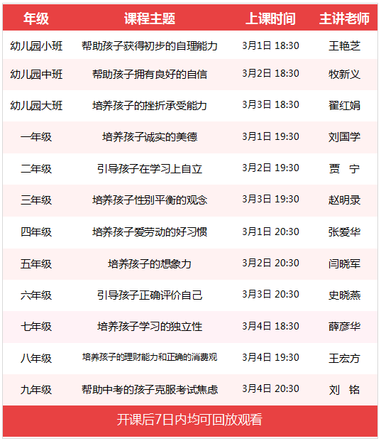 4. 课程自播出之日起7日内有效,过期将无法收看,请各位家长安排好时间及时收看。