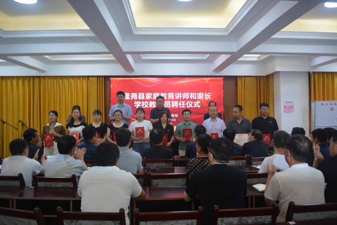 聘任仪式上,教育局副局长殷树峰宣读了《关于聘任孟银芬等同志为隆尧县家庭教育讲师的决定》和《关于聘任四迎娟等同志为隆尧县家长学校教研员的决定》。到会领导向选聘代表颁发聘书。
