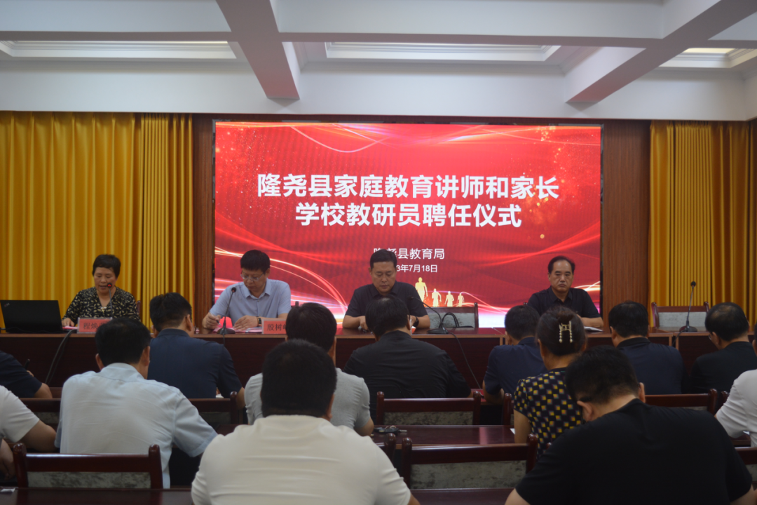 为更好落实《2023年邢台市家庭教育工作要点》文件精神,推动隆尧县家庭教育活动的顺利开展,不断提升家庭教育工作水平,7月18日上午,隆尧县教育局举办家庭教育讲师和家长学校教研员聘任仪式暨专题交流会,会议由教育局家庭教育指导服务中心教研主任程焕荣主持。各校区、县直学校校长、主管副校长、选聘讲师和教研员共计160余人参加会议。