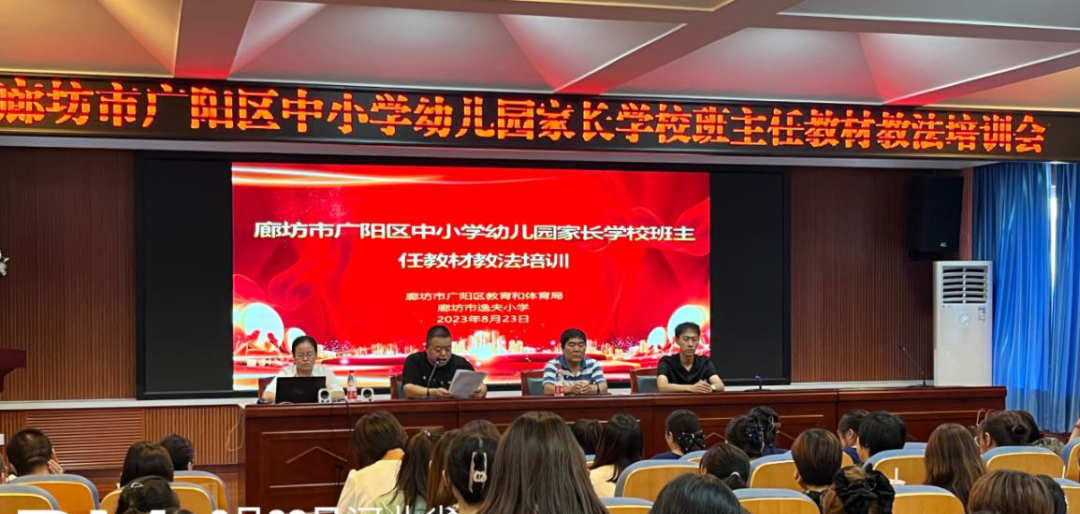 8月23日,廊坊市教育局家长学校班主任教材教法培训落下帷幕,本次培训为期两天,共设大城县、文安县、三河市、广阳区、市直属中小学幼儿园五个会场,参训班主任和德育主任800余人 。