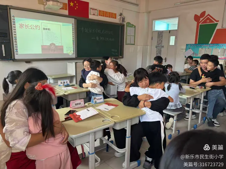 家长和孩子紧紧拥抱在一起。这个拥抱,是承诺,是鼓励,更是共同旅程的起点。