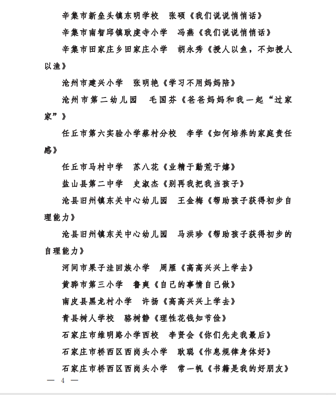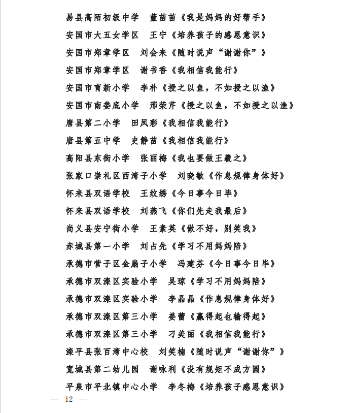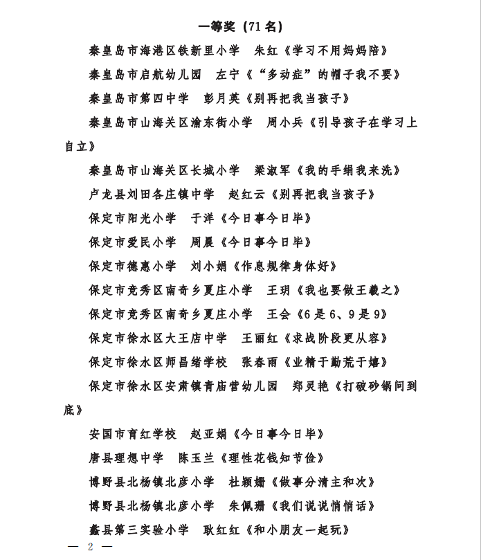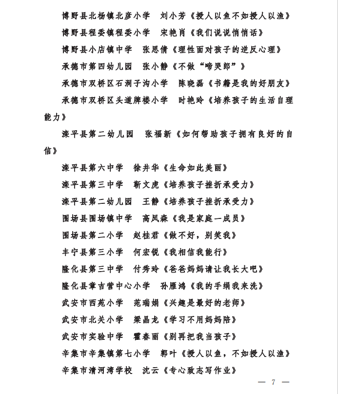 为深入贯彻党的十九大关于促进家庭文明建设和青少年健康成长的有关精神和习近平总书记关于家庭教育的重要讲话指示,按照教育部《关于加强家庭教育的指导意见》和全国妇联等九部委《关于指导推进家庭教育工作的五年规划(2016-2020)》总体部署,进一步提升家长学校教学服务水平,促进家长学校教学工作系统化、常态化、规范化开展,按照省关工委和省教育厅关工委《关于开展家长学校课程实验区实验校活动的通知》要求,省关工委、省教育厅关工委、省电教馆在全省各级各类家长学校联合开展了家长学校优质课评选活动。截至2019年11月底,全省总计上报参评课程643节。专家组在公开、公正、公平的原则下,经过线上认真评选,共评出获奖课程291节,其中,一等奖71节,二等奖88节,三等奖132节,优秀组织奖5个。现将评选结果通报如下。